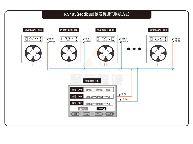 智能型除濕裝置主機(jī)采用RS485的接口與除濕裝置通訊,可以實(shí)現(xiàn)在主機(jī)顯示板面上查看主機(jī)運(yùn)行數(shù)據(jù)并控制修改參數(shù)等功能;該產(chǎn)品可以與本公司所有帶“S”通訊功能的除濕裝置通訊